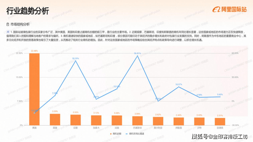 国际坐玻璃包拆行业的买家分布普遍,此中美国、英国和印度占领商机份额的前三甲,,是行业的次要市场,2。近期察看,巴基斯坦、印度和阿联酋的商机年同比增加显著,这些国度或地域的市场潜力正正在快速,3。商机增速较快的国度或地域,如巴基斯坦和印度,部门缘由可能归功于其经济的稳步增加和对包拆行业成长的支撑。同时,阿联营做为中东地域的主要贸易核心,其多元化经济和的商业政策也吸引了大量投资,从而鞭策了相关行业商机的添加,因而,针对这些国度或地域的市场接应连系其经济特点和政策导向进行调整,以抓住增加机缘,