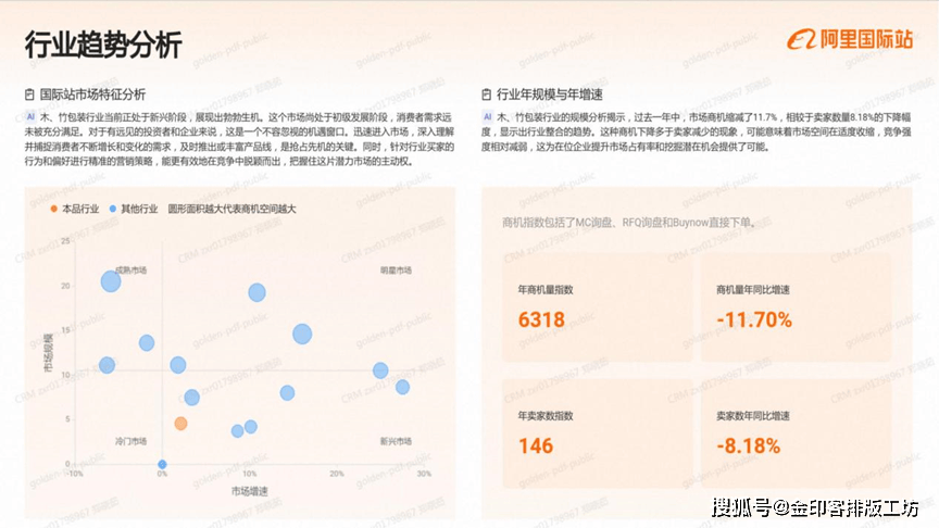 包拆印刷行业当前处于一个繁荣的市场阶段,即明星市场。这一市场特征表示为规模弘大且需求持续兴旺,对于企业而言,这是一个充满机缘的范畴,入驻并加大营销力度,无望敏捷占领可不雅的市场份额。然而,合作也将随之加剧,因而,策略的精准制定取施行显得尤为主要。包拆印刷行业的规模取增加展示出必然的市场动态。过去一年,行业的商机量以0。34%的年增加率稳步提拔,然而,卖家数量的增速却高达18。52%。这种不合错误等的增加态势了市场所作的加剧,每个商机的抢夺更为激烈。对于现有和新晋玩家来说,精准把握商机并顺应卖家数量剧增带来的市场变化取挑和,显得尤为主要。