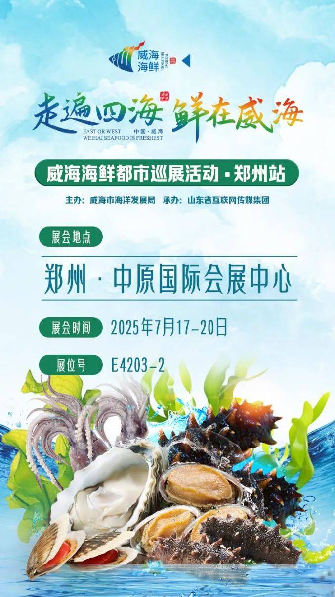 为集中展现、推介威海海鲜,7月17日-20日,威海海鲜都会巡展勾当·郑州坐将表态2025第十届郑州餐饮业博览会/第十届郑州暖锅食材用品博览会。威海市海洋成长局将组织威海藻领鲜食物无限公司、山东中蚝渔业无限公司、威海宇桐生物科技无限公司、荣成市人和新域食物厂、乳山宏利达商业无限公司等5家水产企业参展,参展企业将正在郑州华夏国际会展核心E4馆203-2展区携威海刺参、乳山牡蛎、荣成海带、鲅鱼、鲍鱼、海苔、集中呈现一场威海海鲜质量盛宴。